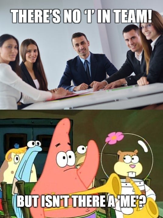 Look, I’m not arguing for the abolishment of the word ‘we’; that would be linguistically insane. In general parlance (as per the examples above), ‘we’ is used to refer to a collective group. In my writing, I’ll use ‘we’ to refer to the connection between you (the reader) and myself. Within the context of leadership and team dynamics, the use of 'we' is frequently recommended to recognise the collective efforts of everyone involved: ‘We work as a team’, ‘we face challenges together’, etc.